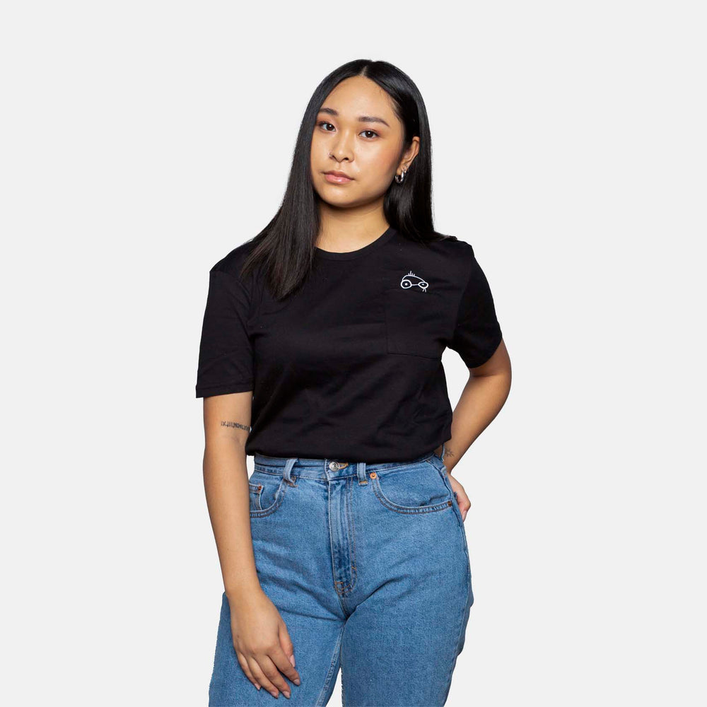 In jeder und jedem von uns steckt ein kleiner Nerd. Das Pocket Nerd T-Shirt aus 100 % Baumwolle hat einen Rundhalsausschnitt und einen Unisex-Schnitt für eine bequeme Passform für Männer und Frauen. Erhältlich in schwarzer und weißer Baumwolle. Designed in Österreich, hergestellt von Freunden in der Türkei.