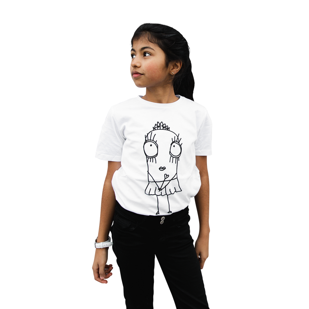 Unser bedrucktes Princess T-Shirt lässt auch die Herzen der kleinsten Prinzessinnen höherschlagen! Das T-Shirt für Kinder aus 100 % Baumwolle ist in Unisex-Größen für eine bequeme, lockere Passform für Mädchen und Jungen und in den Farben Schwarz und Weiß erhältlich. Designed in Österreich, hergestellt von Freunden in der Türkei.