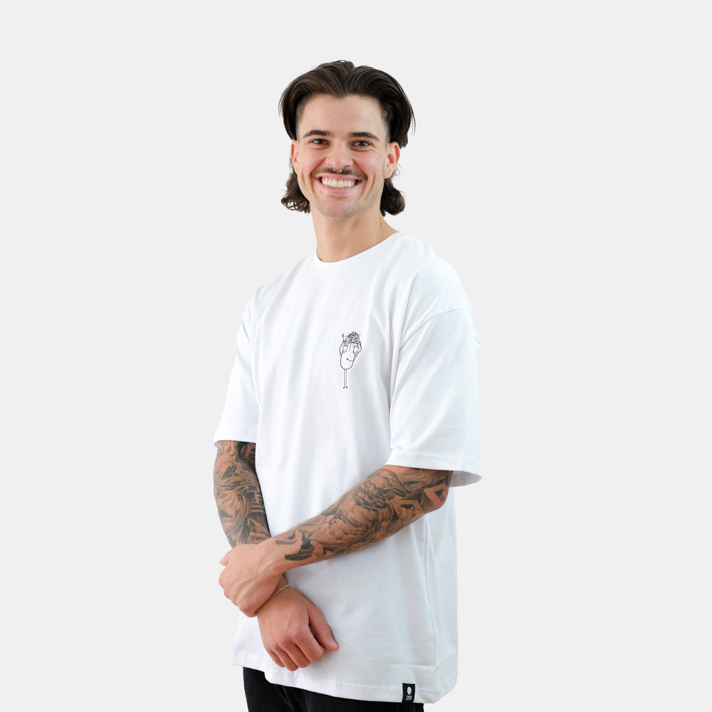 Mach dich locker in diesem originellen T-Shirt. Es ist aus 100 % hochwertiger, schwerer Baumwolle gefertigt und hat einen oversized fit mit überschnittenen Schultern, ellbogenlangen Ärmeln und einem Rundhalsausschnitt. Designed in Österreich, hergestellt von Freunden in der Türkei.